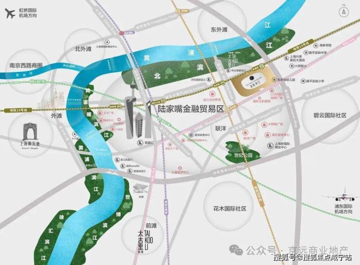 项目地处浦东陆家嘴金融城与前滩国际商务区之间的关键节点.这在某种程度上预示着它既能共享陆家嘴作为金融中心的成熟配套与顶级圈层,又能承接前滩作为未来城市活力中心的增长红利.这种“左右逢源”的格局,为其赋予了无与伦比的稳定性和爆发力.